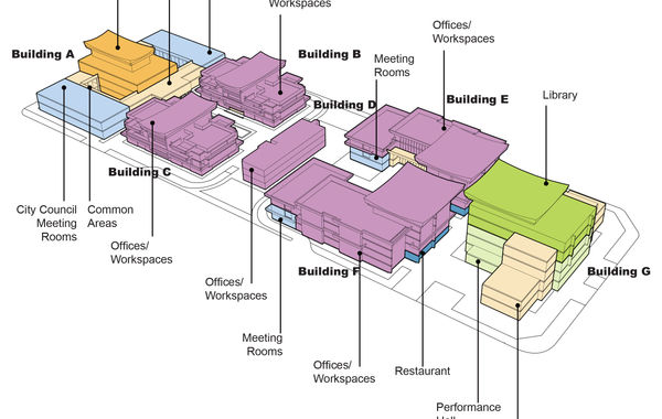 The project brief called for the creation of 55,000m2 a city hall worth of the City of Chengdu (while retaining the architecture of a 3 story building in the middle of the site block). The program included the Cityhall assembly space, office space for all the different city departments, meeting rooms, a performance theater, restaurants, and gathering spaces for the city public to interact with one another and their city official representatives.